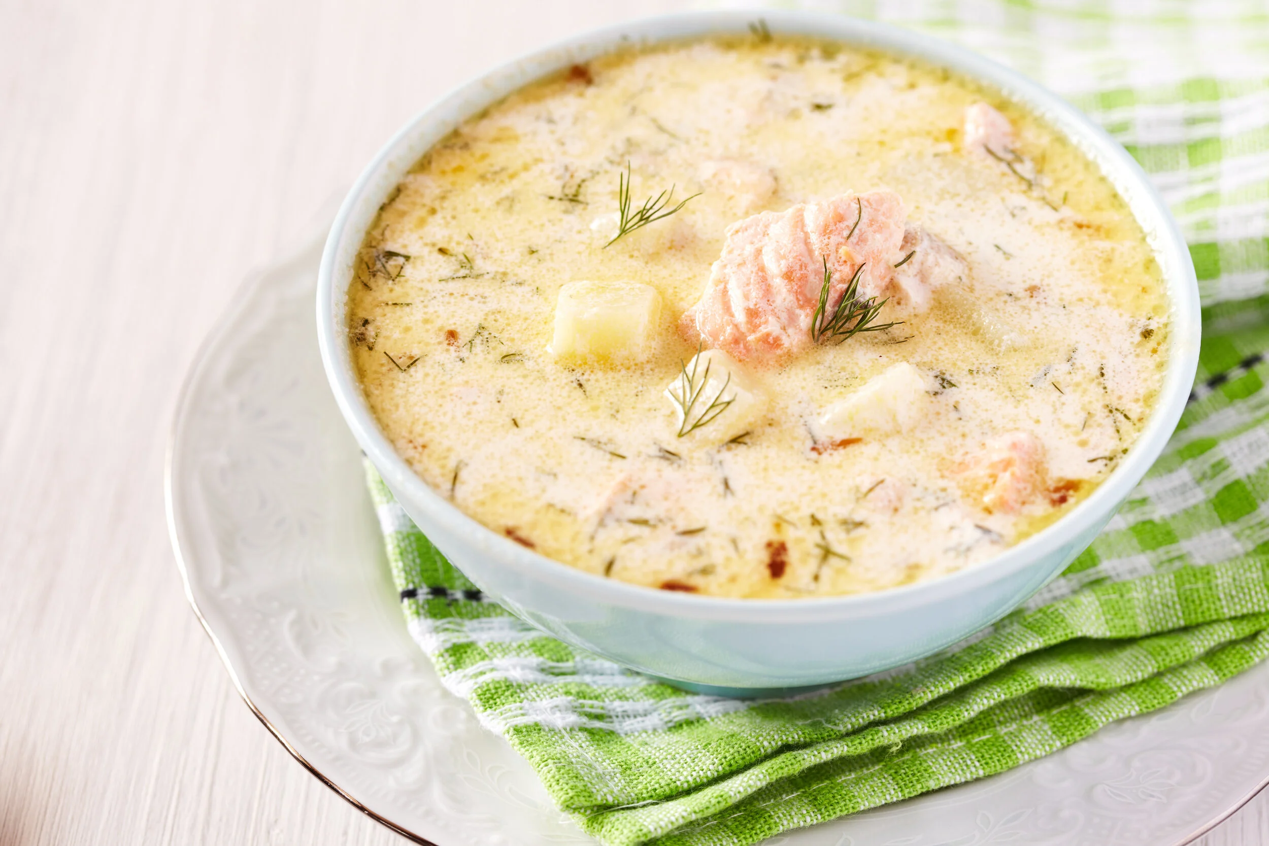 Bobby Flay-Inspired Salmon & Crab Chowder